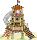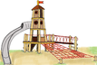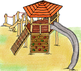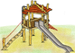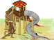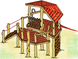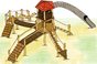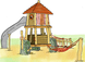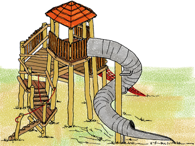 Mit Röhren-Wendelrutsche. Das Zentrum dieser Anlage bildet ein mächtiger achteckiger Aussichtsturm mit Zeltdach und einer Podesthöhe von 300 cm. Dieser Turm ist vorgesehen für die Montage auf
