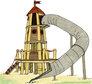 Über eine 360 Grad gewendelte Röhrenrutsche kann man vom Mittelturm aus eine Höhendifferenz von 450 cm überwinden.